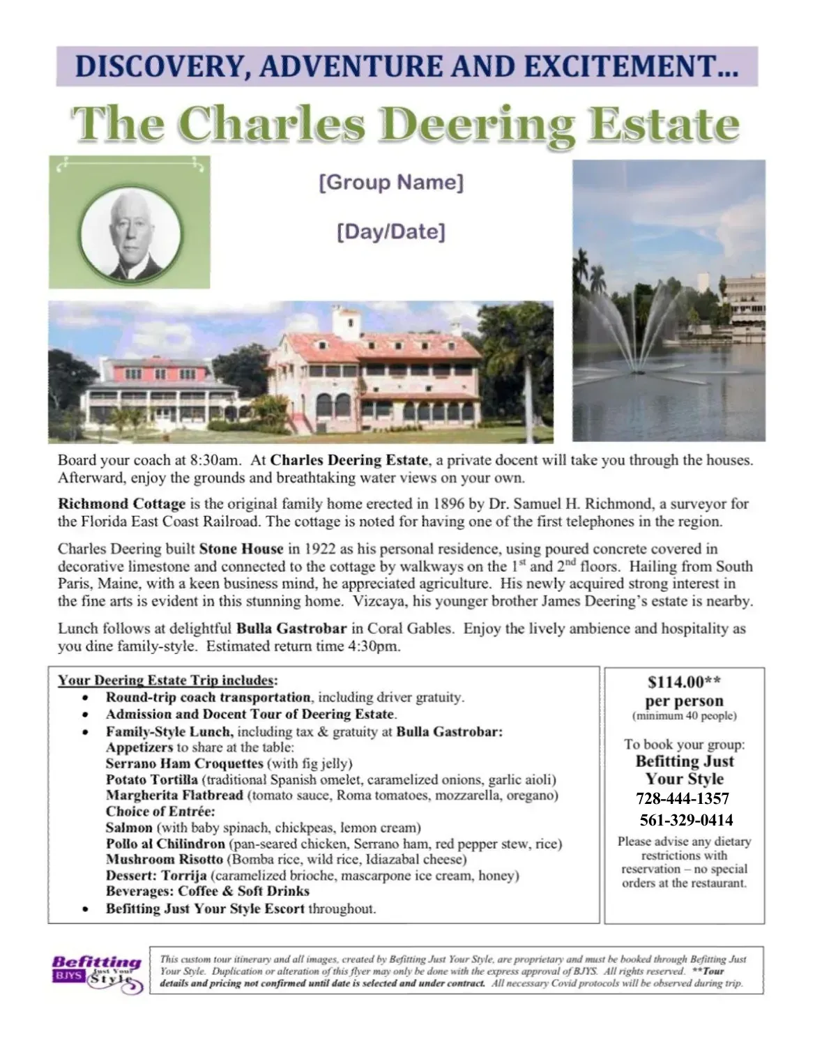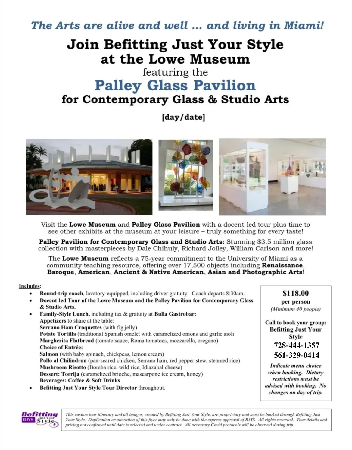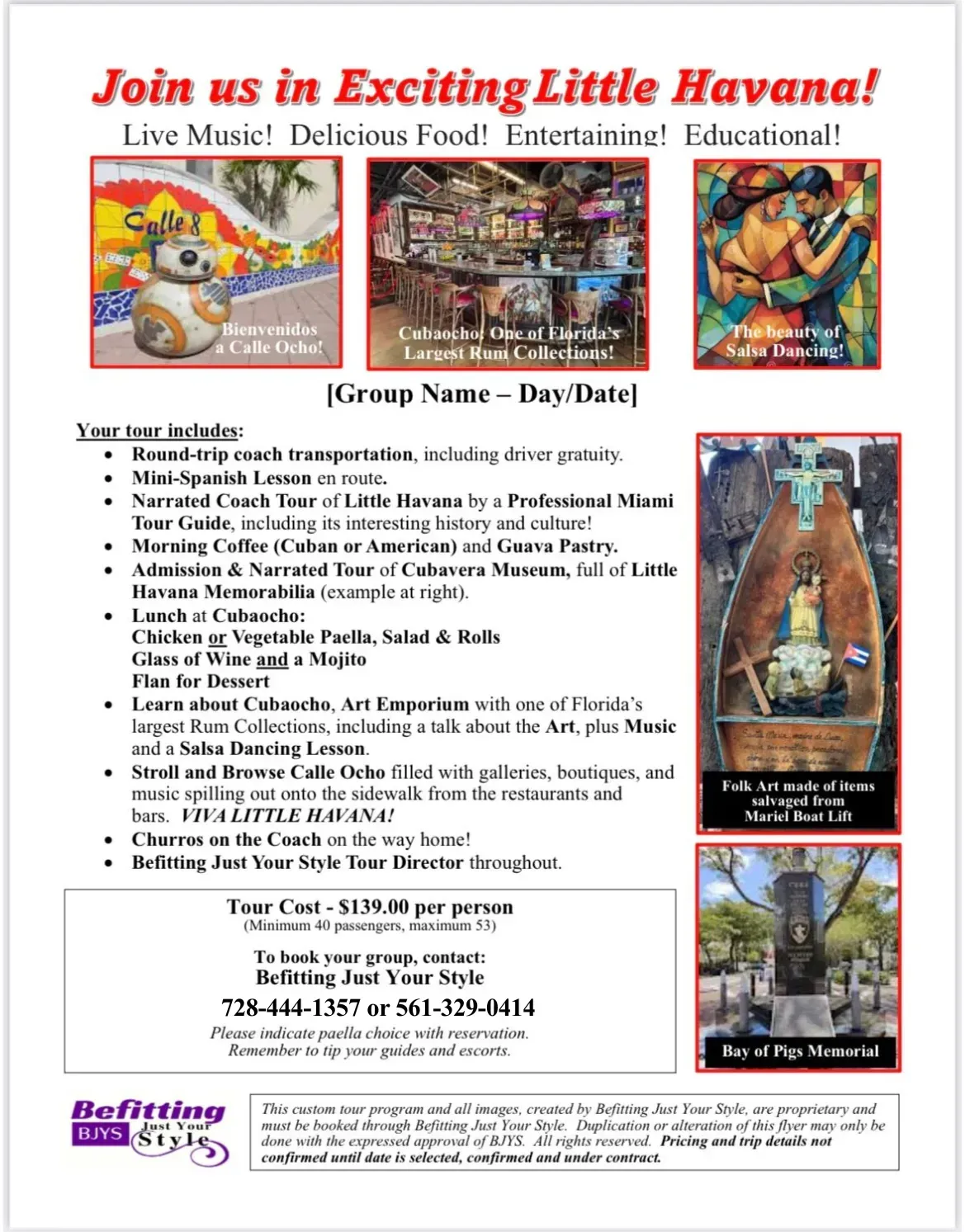 Based in South Florida, we are your go-to for custom tours. With our commitment to delivering exceptional services, Befitting Just Your Style has earned a reputable standing in the hospitality industry. When it comes to unique custom tours, special events and coordinated programming, Befitting Just Your Style is your best choice. Our team is dedicated to providing top-notch custom tours with attention to detail. Contact us today to learn more about our custom tours and how we can assist you in planning the perfect custom tour!