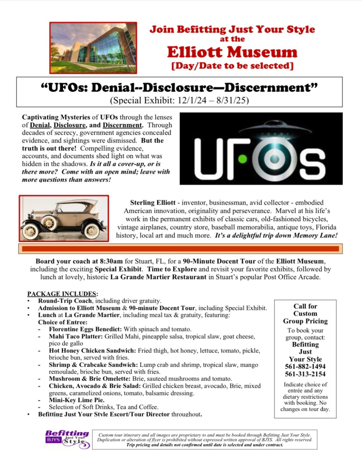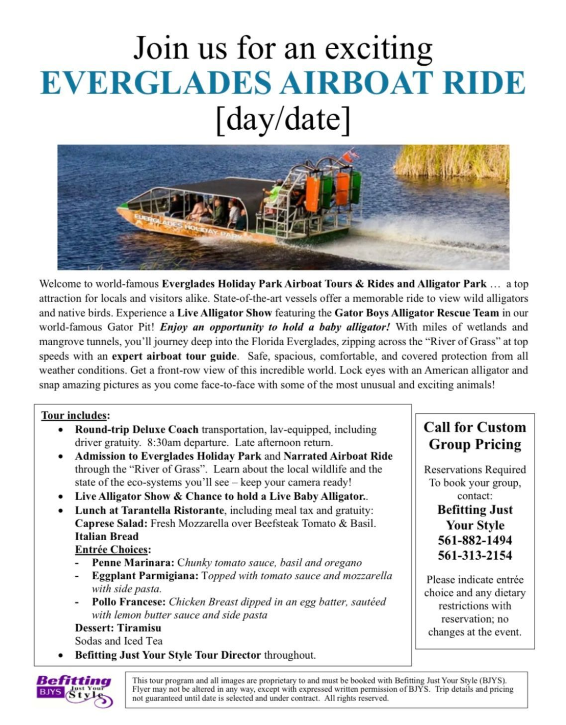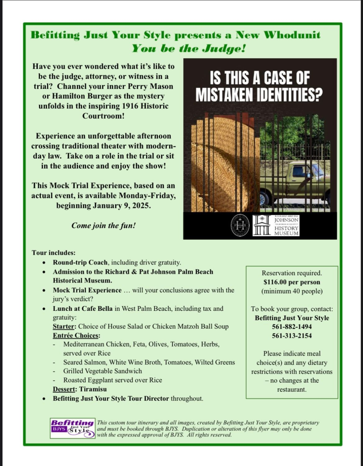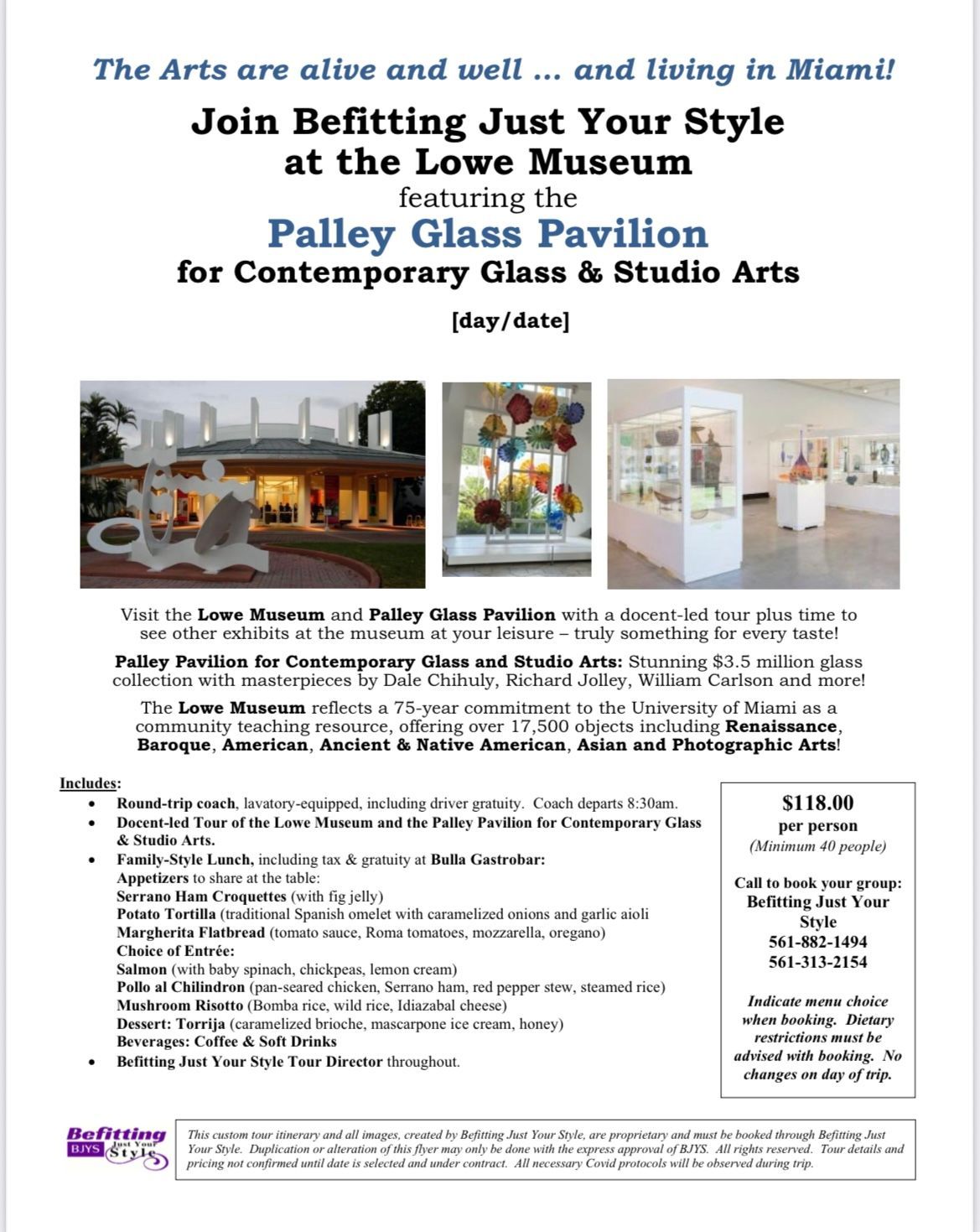 With 35 years of experience, our goal is to work with groups and organizations to offer an outstanding experience. All trips and tours can be customized to your group's, club's, or organization’s satisfaction. Our company offers day trips, overnights, and trips of several days duration. We take pride in offering unique, cultural, historical, and educational tours and trips. Your group or individuals can now take advantage of our “open bookings.”. This concept enables small groups or individuals to join and reserve space for some of our group bookings that are not filled to capacity. Our pricing is all-inclusive, with no hidden fees. We will customize your trip or tour to fit your group’s needs. We will also create an individualized flyer for your trip or tour with the name of your group, date, and who to call in your group for reservations. Transportation is included, unless otherwise requested. We work with multiple bus companies, so we are able to accommodate groups as small as 12 and up to 55. It is our policy to provide an escort or guide with each trip to ensure that everything runs smoothly since Befitting Just Your Style set up the program. Additionally, some of our programs can be brought to your location or off-site at another venue.
